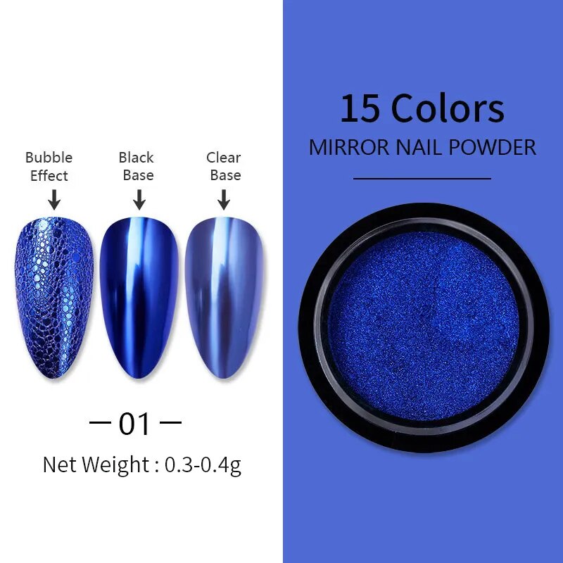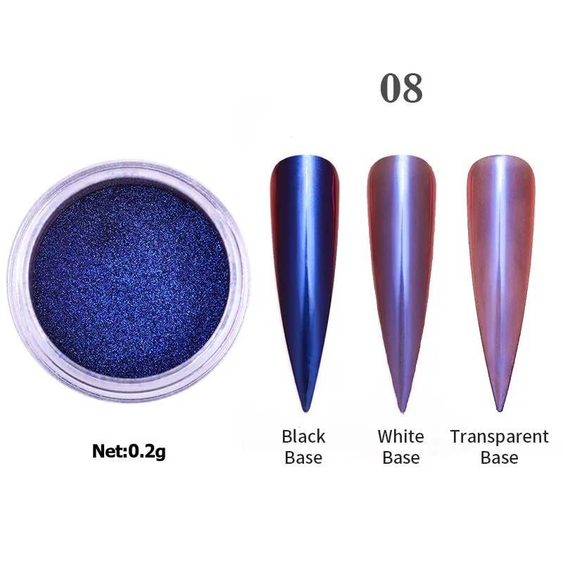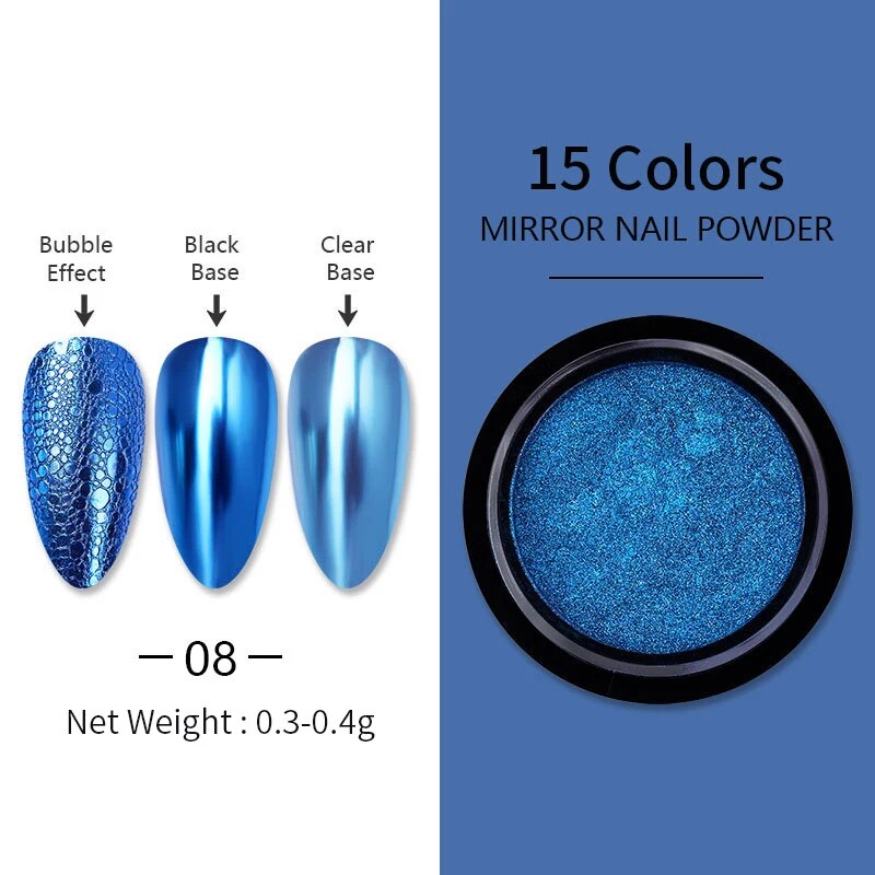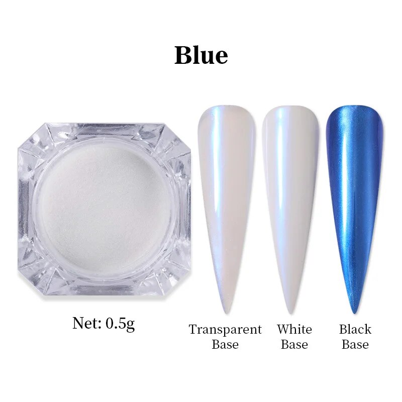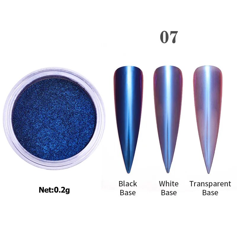 1 Box Spiegel-Nagelpulver, blaues Chamäleon, Metallspiegel, Nagelglitzer, Metallic-Effekt, Chrom, Nageldekoration
