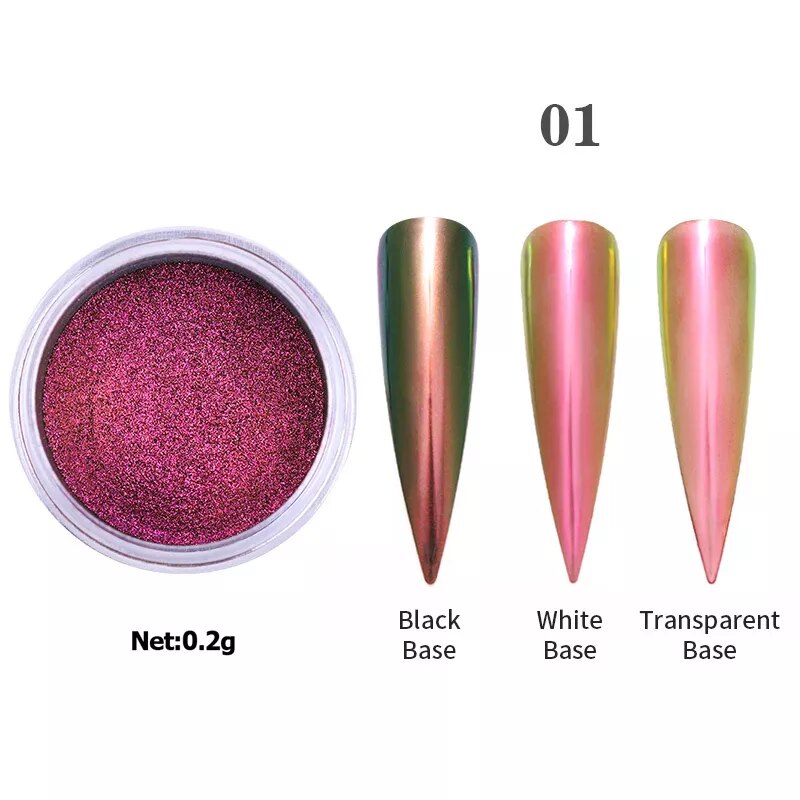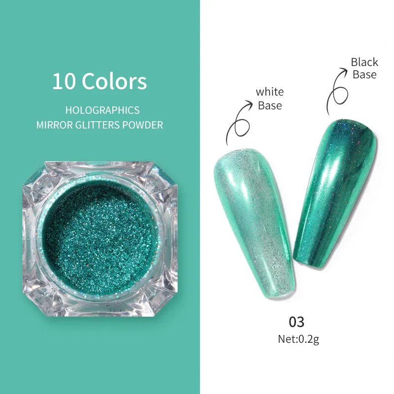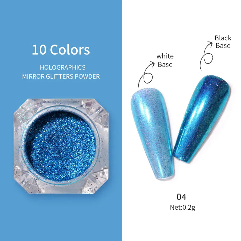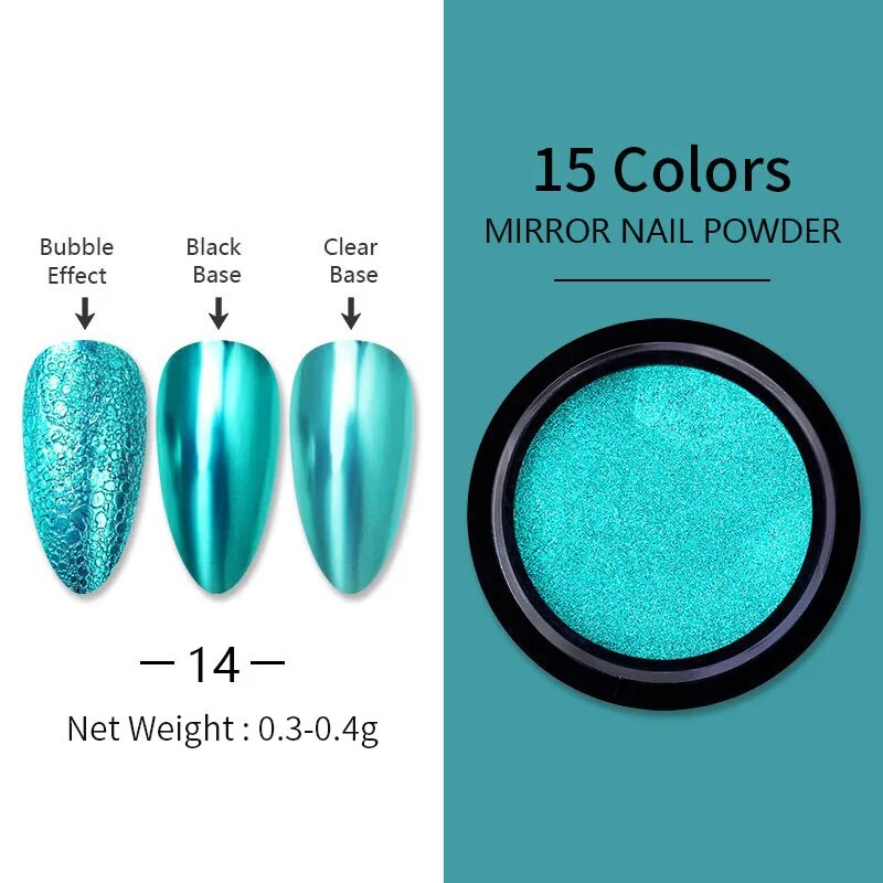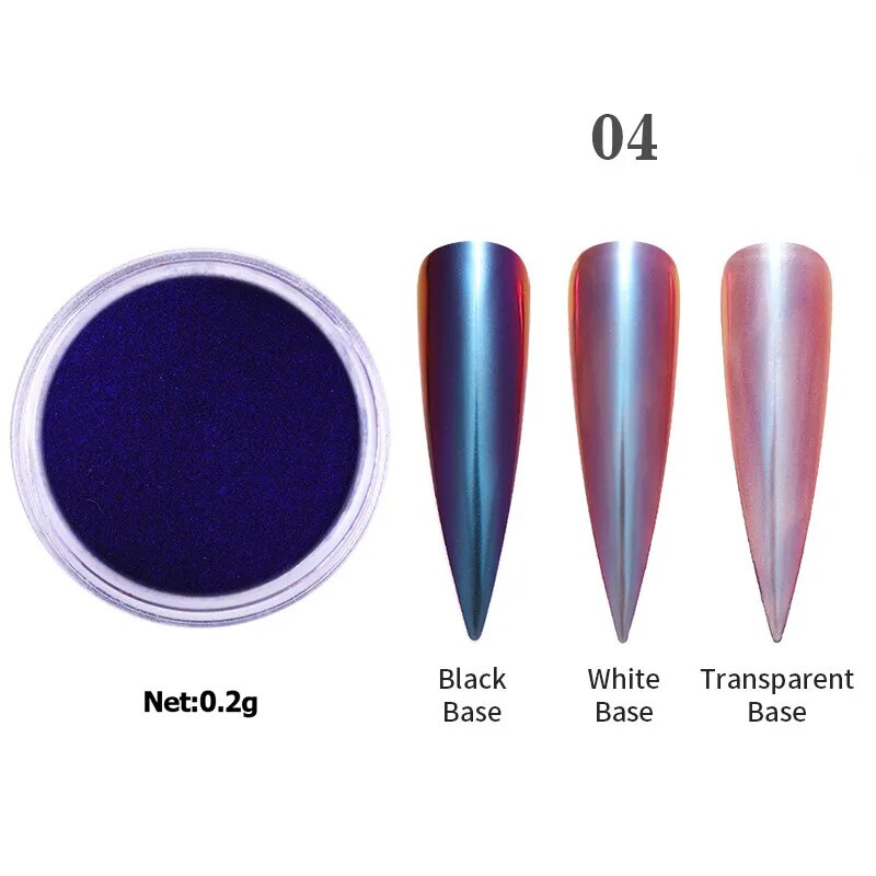 1 Box Spiegel-Nagelpulver, blaues Chamäleon, Metallspiegel, Nagelglitzer, Metallic-Effekt, Chrom, Nageldekoration