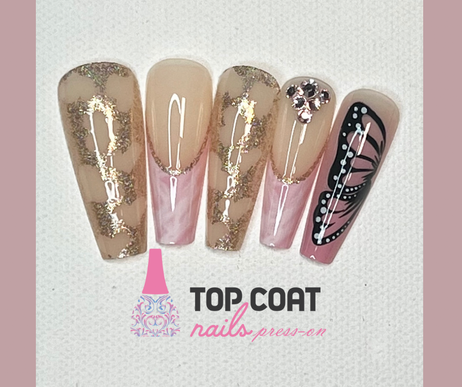 The Elegant Pink Marble and Butterflies nails design is eye-catching and unique, add a touch of elegance and femininity. The design is perfect for those who want to add a pop of color to their look or add a subtle touch of playfulness.