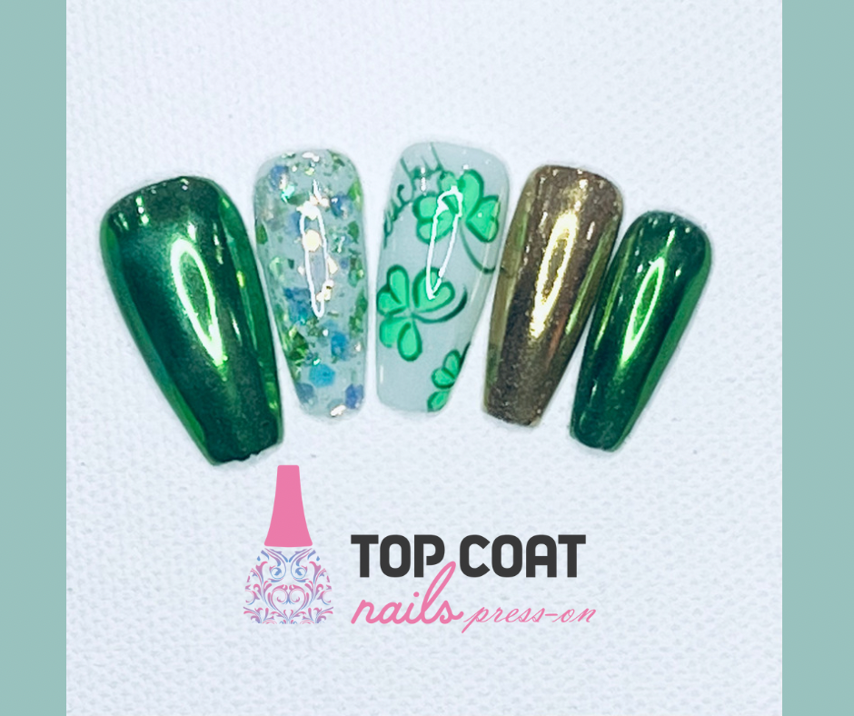 The Glitter Chrome St. Patrick’s Days nails design is eye-catching and unique, add a touch of elegance and femininity. The design is perfect for those who want to add a pop of color to their look or add a subtle touch of playfulness.